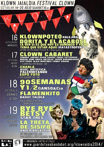 El festival clown llegará de nuevo al Guardetxea el jueves con entradas a 5 euros. La puesta de largo, sin embargo, será hoy miércoles con un klownpoteo por la Parte Vieja a las 19:30 que culminará a las 20:00 horas con un espectáculo gratuito.