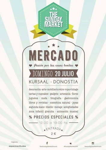 Tras el bonito mercado cultural y callejero del Kutxa Kultur Hiria del fin de semana pasado, The Sunday Market vuelve a Donostia para ofrecer objetos de decoración, mobiliario, ropa vintage, libros, vinilos, tartas, cupcakes…