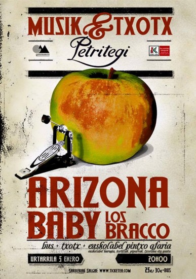 Vuelve una nueva edición del siempre atractivo Musik & Txotx de la mano de la promotora donostiarra Ginmusica. Dos bandas -los donostiarras Los Bracco y los vallisoletanos barbudos de Arizona Baby- actuarán en el comedor de la sidrería Petritegi. Habrá txotx y pintxos con euskolabel. Y se puede coger el autobús en el Buen Pastor o aparecer directamente en Astigarraga.