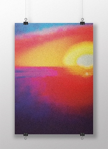 «La inspiración de mi cartel viene de la solitud. Los colores conseguidos alrededor del sol escondiéndose muestran la saturación de un día soleado con mucho calor. Un golpe de sol, un sueńo despierto o una pesadilla esperando la luna para acabar con la locura de un viernes excitado en el desierto. Técnica mixta, fotografía de de otra fotografía usando pantallas de móviles reflejadas en un espejo con filtros de una proyección de una grabación del atardecer».