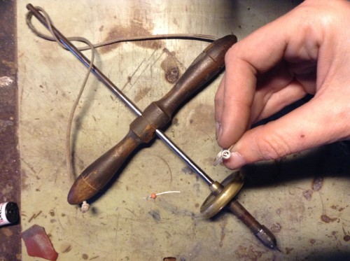 Aunque su formación incluye otras técnicas y máquinas, Yolanda tiene claro que quiere seguir fiel a un proceso de fabricación totalmente artesanal: crea cada pieza desde cero, sin utilizar moldes, “a golpe de fuego y fuerza”. Sólo emplea oro, plata y otros materiales naturales; piedras, concha, madera… Su taller está en su casa (entre Irun y Hondarribia) y compró sus herramientas a joyeros retirados.
