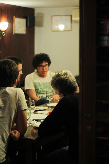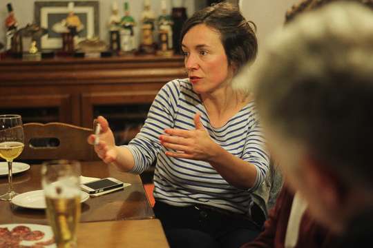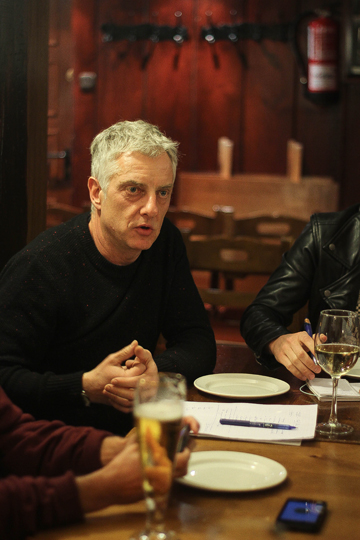 La cita es en Casa Vergara de la Parte Vieja (calle Mayor, 21), donde nos han reservado una mesa apartada del resto al fondo del local. Durante la charla, que se extenderá más de 90 minutos, de 19:30 a pasadas las 21 horas, nos servirán varios platos de ibéricos y una hermosa tortilla de patatas. Álex López Allende (Dabadaba, Ayo Silver!) llega primero y enseguida nos ponemos a charlar con el jefe de todo esto, Álvaro Manso, que nos lanza una bala directa a la sien a cuenta del precio de un piso que se alquila en el edificio donde vive: «Donostia no es una ciudad cara. Es mentira». Poco a poco va llegando el resto, un goteo de gestores y personalidades culturales de la ciudad: Edorta Subijana, Jokin Telleria (Xpressionk, Kultura Alternatiboa), Jaime Otamendi (Donostia Kultura), Sancho Rodríguez (Surfilm Festibala) y Ane Rodríguez (Tabakalera).