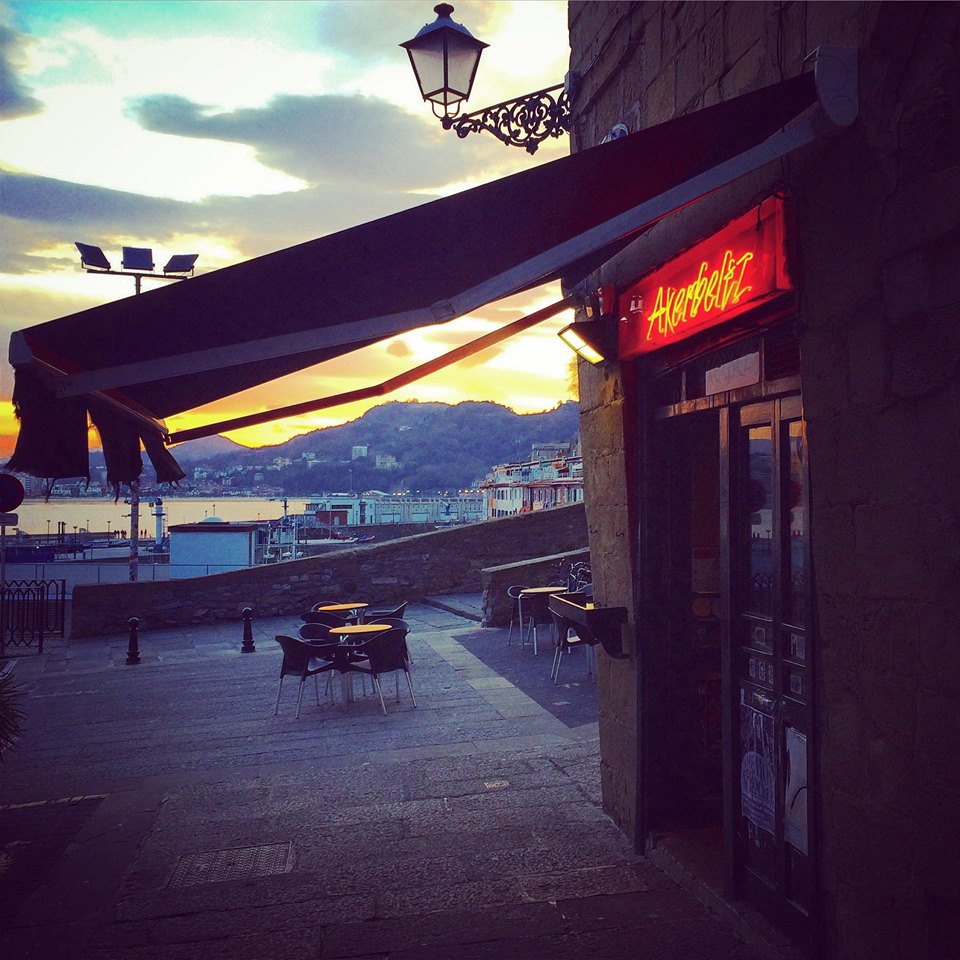 Hemos hablado por aquí unas cuantas veces del Akerbeltz, pero lo seguiremos haciendo las veces que haga falta. Sus vistas desde un costado de la bahía de la Concha en plena Parte Vieja son fantásticas. Es verdad que las obras del edificio contiguo le han mordido parte de la terraza (al parecer van a construir un hotel), pero sigue siendo un lugar privilegiado. Además, si te gusta la cerveza estás de enhorabuena: sus cañas están muy bien tiradas y tienen una amplia oferta de cervezas artesanales.