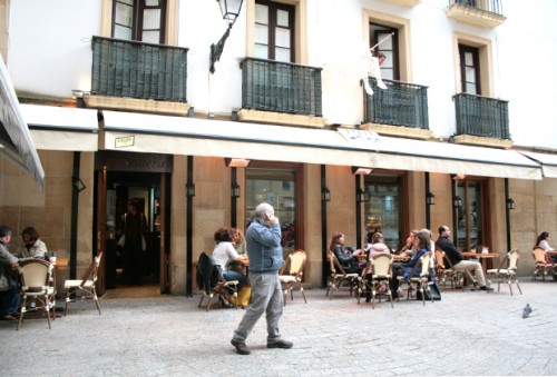 La placita Valle Lersundi nos conduce al final del recorrido. En una pared un cartel indica que el escritor TORIBIO ALTZAGA nació ahí mismo en 1861. Al otro lado está el no menos mítico bar MARTÍNEZ. Los dos únicos pubs de este tramo -para público muy joven, eso sí- son BUGA y TXINTXARRI. Ambos están cerrados. En la CEPA cuelgan los jamones con brío y la misma mesa en la que el actor Ramón Barea come un filete con patatas en «El Negociador» hay una pareja. LA VIÑA es otro clásico que hace muy bien las cosas; y no sólo por su famosa tarta de queso, la merluza rebozada, la ensaladilla rusa o la jugosa tortilla de patata. Suelen ser atentos y simpáticos, como en el agradable bar ORMAZABAL y su foto a gran escala del bosque de Oma. Como en La Cueva. La 31 de agosto es especial hasta en eso.
