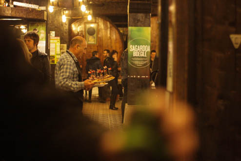 Comer y beber. Esa va a ser la ecuación antes de que empiecen los conciertos. La bodega está abierta y catamos la sidra en varias kupelas. El ritual sidrero ya está en marcha.