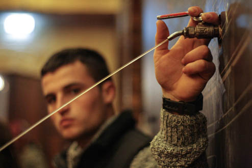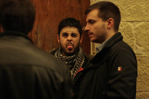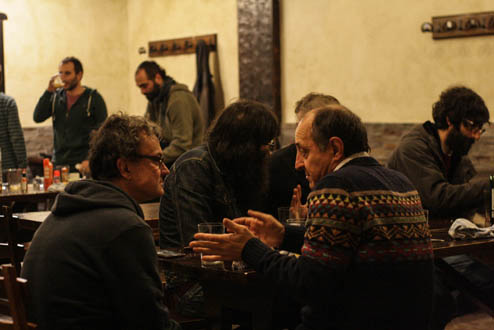El principal guitarra de Los Bracco, Toni Medina, tiene fiebre y su cantante, Pablo Fernández, anda con la garganta fastidiada. El grupo está diezmado, pero les sale un concierto mucho mejor de lo esperado. Tocan en el comedor del fondo, donde han habilitado un escenario pegado a una pared en la que figuran ilustres deportistas y personajes públicos vascos inaugurando la temporada de sidra desde los años 90 hasta ahora 2010.