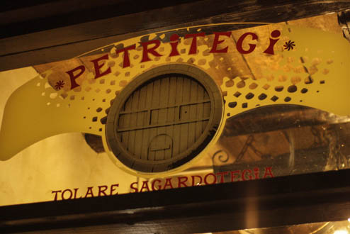 Entramos ordenadamente a la sidería. En el comedor principal las mesas corridas nos esperan con los primeros pintxos de hamburguesa. Al ataque.