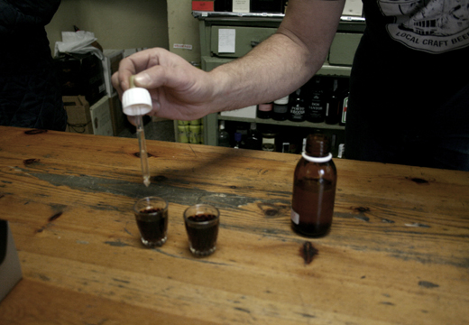 Ardo usain gozoa nabaria da dendaren hiru gela ezberdinetan: sarreran, erakusmahaia dagoen lekua, alegia; eta upeltegian, bitan banatu egiten den gunean ere, apalategia eta kupelen zonaldea. Egurrezko lurra zanpatzen dute gure oinek. Denbora aspaldi eten dela dirudi.