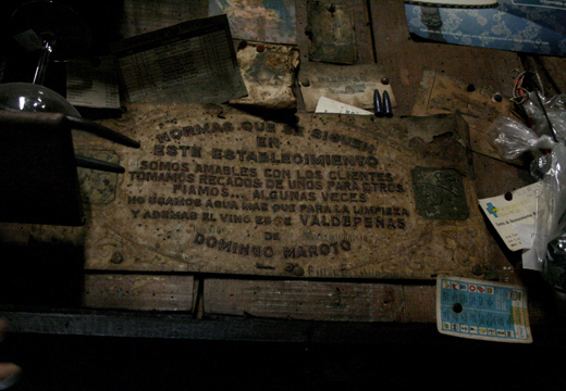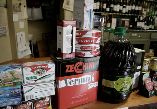“110 urte ditu honek“, azpimarratzen du Bernardok. “50. hamarkadan osabak erosi zuen, komestible denda ere zenean”. Gaur egun, Bernardoz gain haren bi semeak egiten dute lan, Ibon eta Gorkak, nahiz eta soilik horietako bat ikusten dugun bestea “karroarekin joan delako”. Dendako kupelak ikustera joan aurretik -“sotoan bodega handiagoa dago”- Bernardok egurrezko inskripzio bateko esaldi zahar bat irakurtzen du: