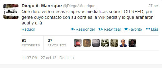 Norberak nahi edo ahal izan duen bezala sentitu du Reeden heriotza. Adierazpen zintzo eta egiati guztiak onargarriak beharko lukete izan. Haatik, denek ez dute hala pentsatzen. Badirudi zenbait adituri ez zaiola zabaltze informatiboa gustatu. 70. hamarkadan, une gorenean, ezagutu ahal izan zutenak dira soilik horretarako gai? Aditu ez direnei haren inguruan iruzkinak egitea debekatu behar zaie? Zergatik da txarra Wikipediara jotzea? Harritzekoa al da Lou Reeden 50 urteko ibilbidearen ondoren abesti arrakastatsuenak soilik aipatzea?
