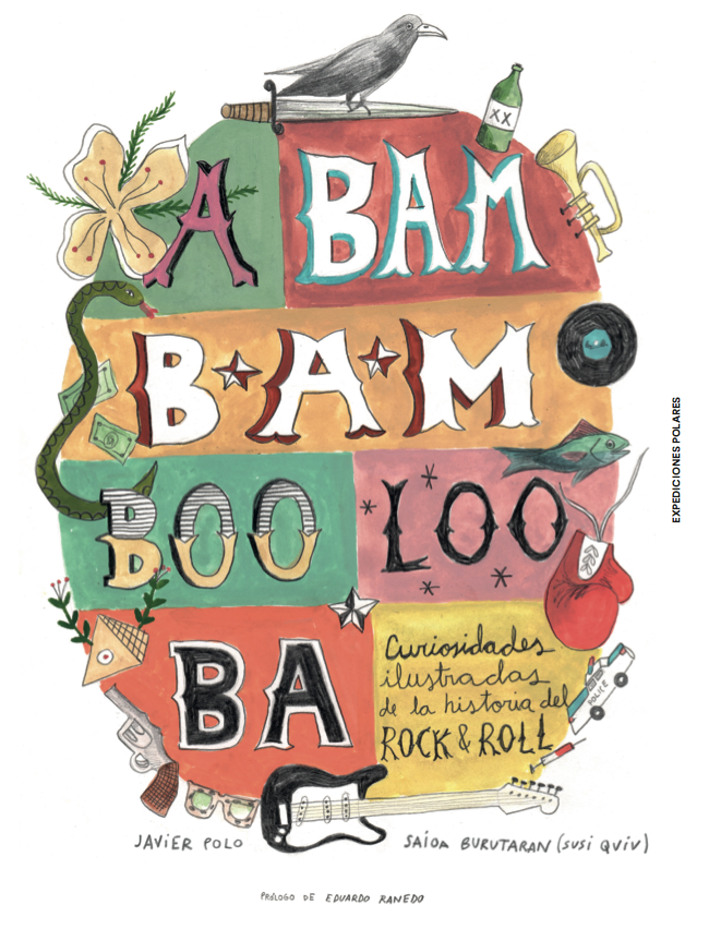 «Nos planificábamos por objetivos», explica Javi. «En una semana, teníamos que tener tantas anécdotas escritas con sus respectivas ilustraciones. Era la única manera. El tiempo corría y nos metíamos caña mutuamente para conseguirlo». Ambos han trabajado a contrarreloj para que «A Bam Bam Boo Loo Ba, curiosidades ilustradas de la historia del rock & roll» -el tercer lanzamiento en menos de medio año de  la editorial donostiarra Expediciones Polares tras las novelas «Anotaciones circulares» y «Hambre a borbotones»- pueda ser presentada este viernes 27 a las 19:30 horas en la librería Garoa de Gros. Además, el festival de cine documental musical Dock of the Bay presenta el primer acto dentro de la programación de la próxima edición con, precisamente, una exposición de los dibujos rockeros de Saioa en el sótano de Garoa.