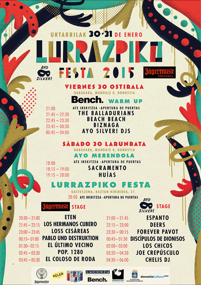 CARTEL LURRAZPIKOPuede que muchos de los nombres que conforman el cartel del festival Lurrazpiko Festa que se celebra este fin de semana no te digan demasiado. Nos encontramos, en la mayoría de los casos, ante una interesantísima hornada que empieza a despuntar en el panorama musical. 17 bandas de rock and roll, pop, electrónica y otros estilos que lo van a petar, si es que no lo están haciendo ya. Un plantel estupendo sin cabezas de cartel aparentes.  Las entradas oscilan entre 3 euros el viernes (Dabadaba) y 17 euros el sábado (Gasteszena).