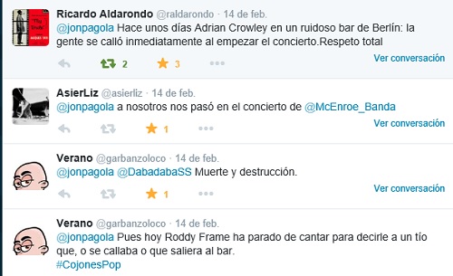 En los últimos años el fenómeno se ha extendido tanto que lo raro es que no suceda. A veces lo identificamos como un molesto murmullo que no sabes muy bien de dónde viene; otras veces tienes al charlatán a tu lado, perfectamente identificado. Y ambos casos te pueden arruinar una gran noche. Varios medios –Jenesaispop y Playground, entre otros- se han ocupado en más de una ocasión sobre este engorroso asunto. Músicos como Señor Chinarro, Kiko Veneno, Aaron Thomas o Christina Rosenvinge se han quejado públicamente. Es, por mucho que nos irrite, una escena cotidiana, un recurrente capítulo: asistir a un concierto y que por las rendijas de las canciones se cuelen las conversaciones de los vecinos como indeseable música de fondo.