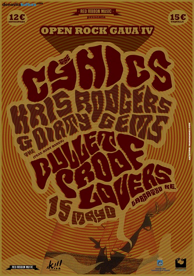 Y para terminar, un señor festival de garaje y rock and roll y una delicatessen. OPEN ROCK GAUA (C.C. Larratxo, 15 de mayo) se presenta con el garaje revival de los CYNICS como principal reclamo, además de los donostiarras Bullet Proof Lovers  y el proyecto de rock más bien clasicote de Kris Rodgers & The Dirty Gems. La joyita, por su parte, se llama JACCO GARDNER (Intxaurrondo, 25 de mayo). Este chico holandés se está ganando a pulso sus visitas a Gipuzkoa -la tercera en dos años- gracias a su clase y sus brilantes conciertos de pop barroco.